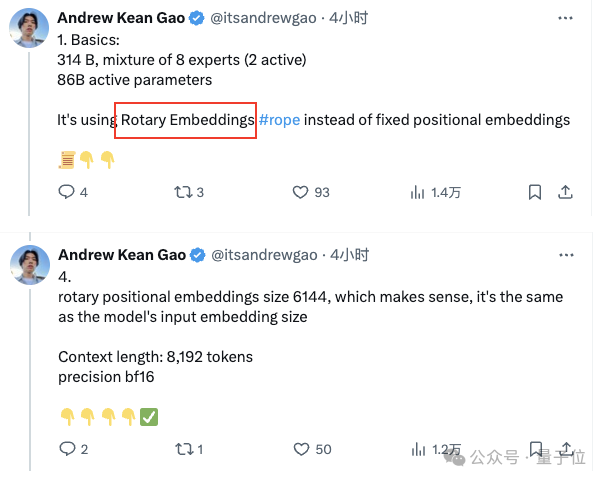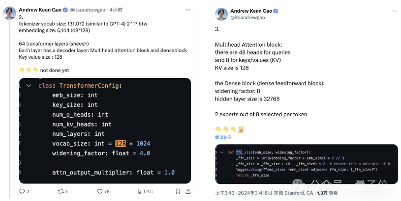 比如来自斯坦福大学的Andrew Kean Gao,就针对Grok的技术细节进行了详细解释。