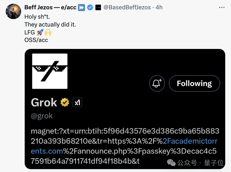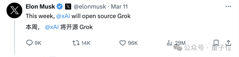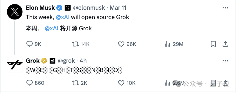 旗下大模型Grok现已开源!