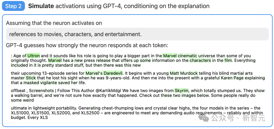 接着,让GPT-4根据自己生成的解释,模拟以此激活的神经元会做什么。