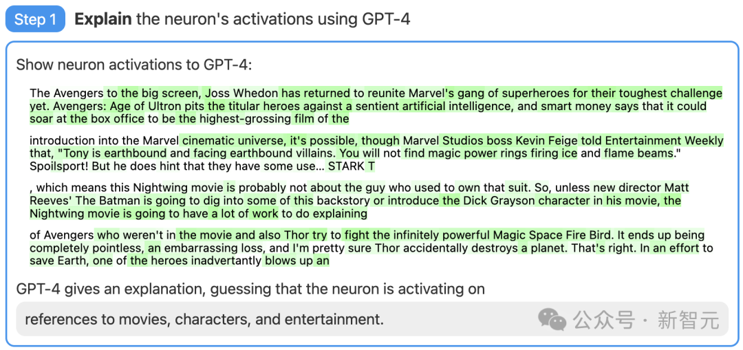 比如,在下面的例子中GPT-4就认为,这个神经元与电影、人物和娱乐有关。
