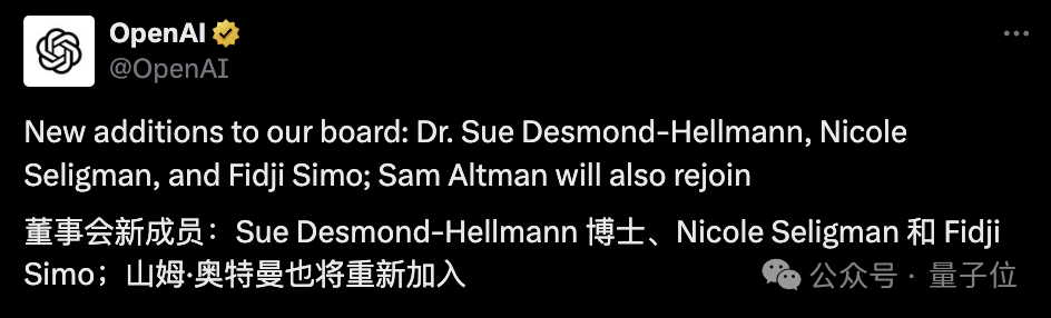 就在刚刚,OpenAI CEO奥特曼官宣重返董事会!