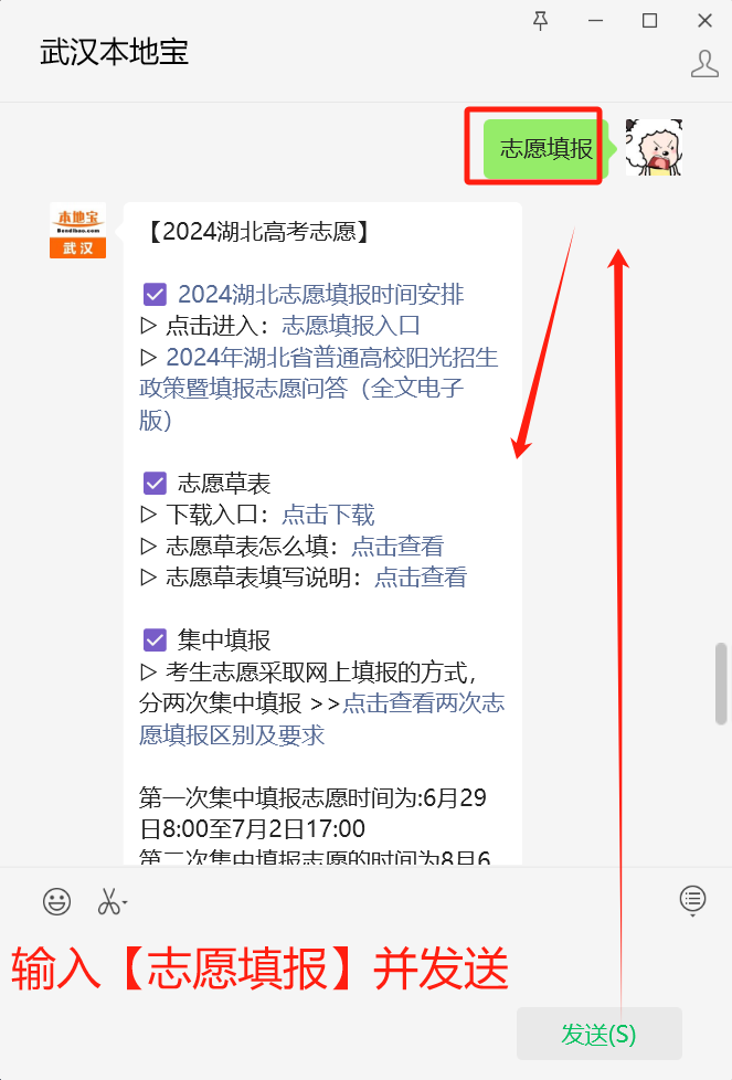 后台聊天区回复关键词【志愿填报】