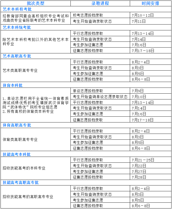 湖北省2024招生录取时间安排表