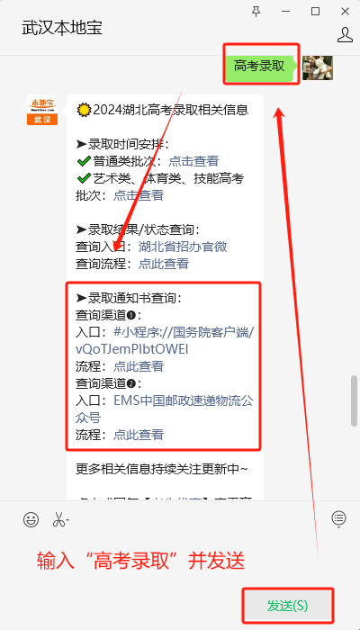 查询入口:国务院客户端、EMS中国邮政速递物流公众号,也可以扫描下方二维码,关注【武汉本地宝】在对话框发送【高考录取】,获取2024高考录取通知书查询入口等更多信息~