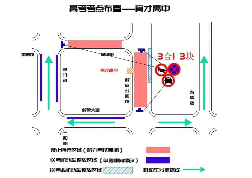 解放公园路(绿缘路至解放大道)、绿缘路(澳门路至解放公园路)听力考试期间禁止通行,建议绕行永清路、澳门路、解放大道;绿缘路澳门路口禁停、禁鸣、禁行。