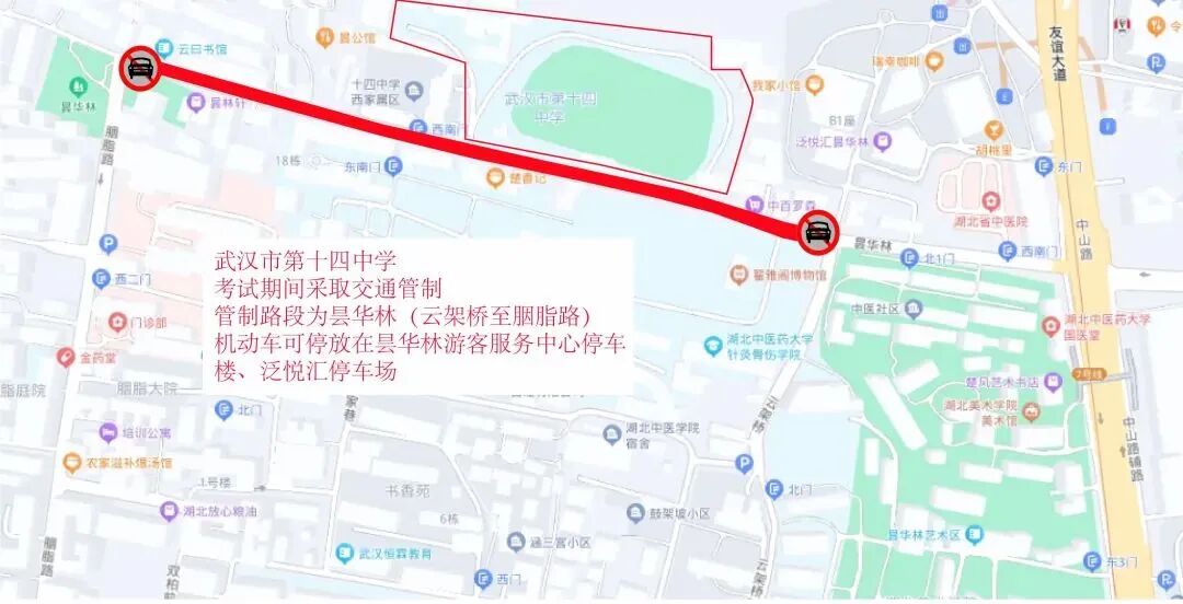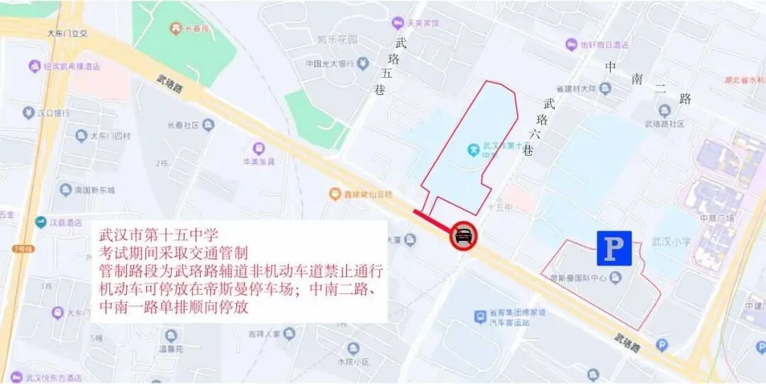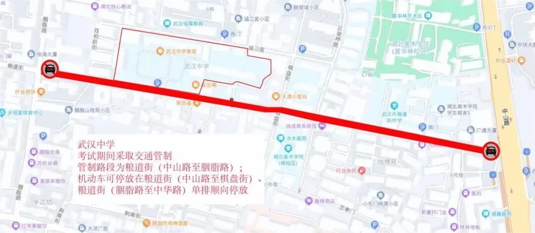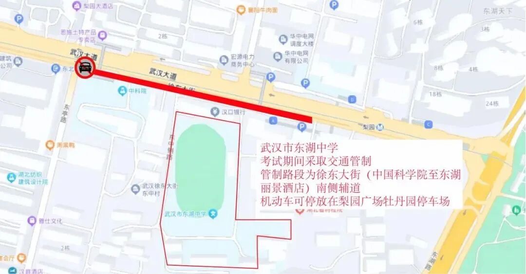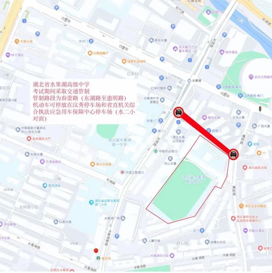 6月7日—9日每日上午考试前2小时至当日考试结束,首义路(长湖正街至张之洞路)限行。