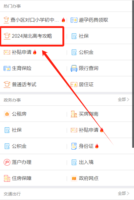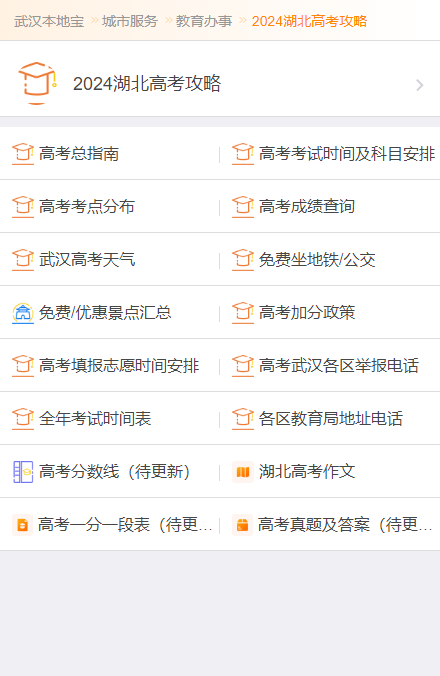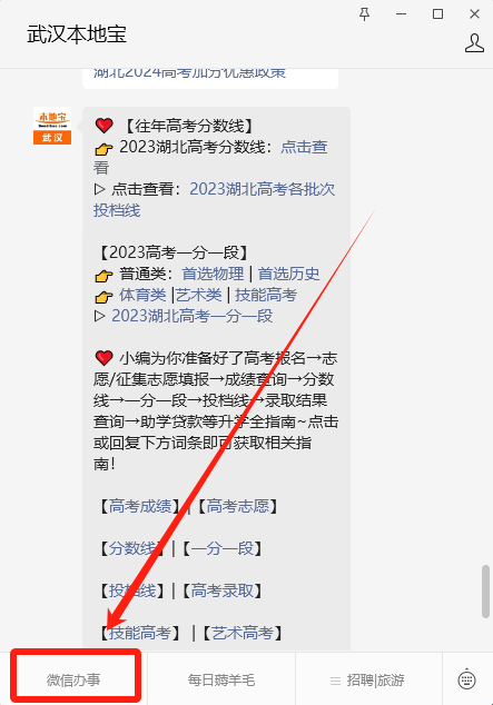 点击菜单栏【微信办事】-【2024湖北高考攻略】