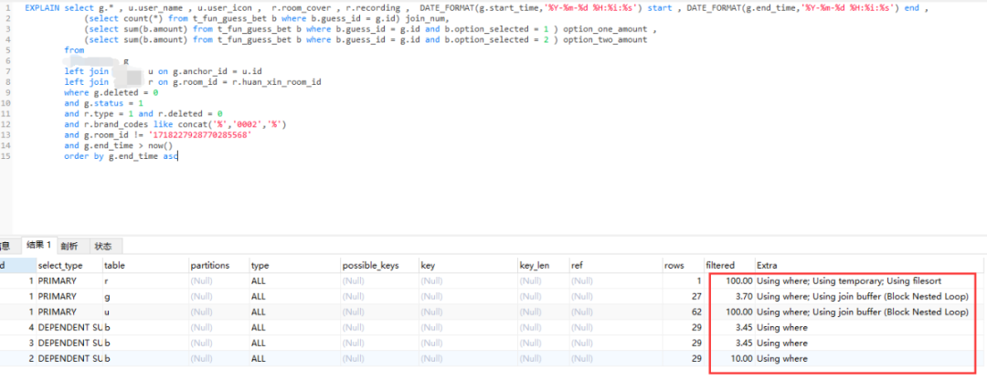 这不看不知道,一看吓一跳,一个C端频繁访问的接口SQL性能极差,Using temporary、Using filesort、Using join buffer、Block Nested Loop全出来了。
