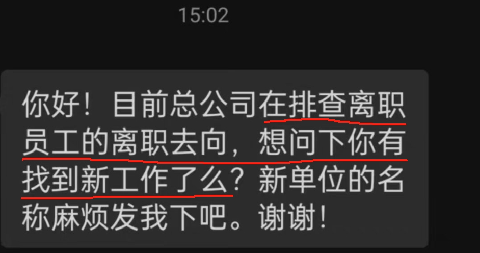 但是一网友在网上发帖称,离职后,前公司竟然调查他们的去向。