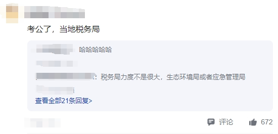 一网友也不惯着:“考公了,当地税务局”哈哈,从此翻身把歌唱。
