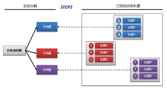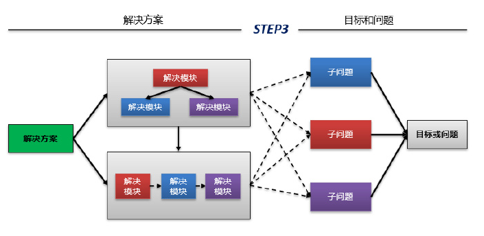 是不是一目了然?各个解决方案模块通过集成和联动最终完成大目标的解决,这就是麦肯锡问题分析解决七步法的核心逻辑。