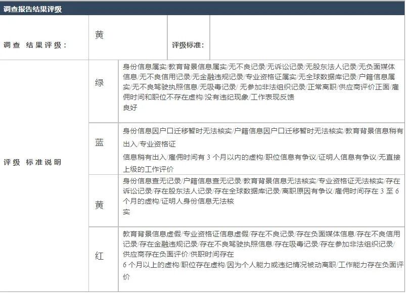 背调靠判灯模型来判断候选人是否合格,绿灯和蓝灯是轻微问题,黄灯代表有造假或与简历有差异,看招聘方能否接受,而红灯则意味着严重造假。有的公司会把红灯候选者放进黑名单,有的公司是整个集团永不录用。