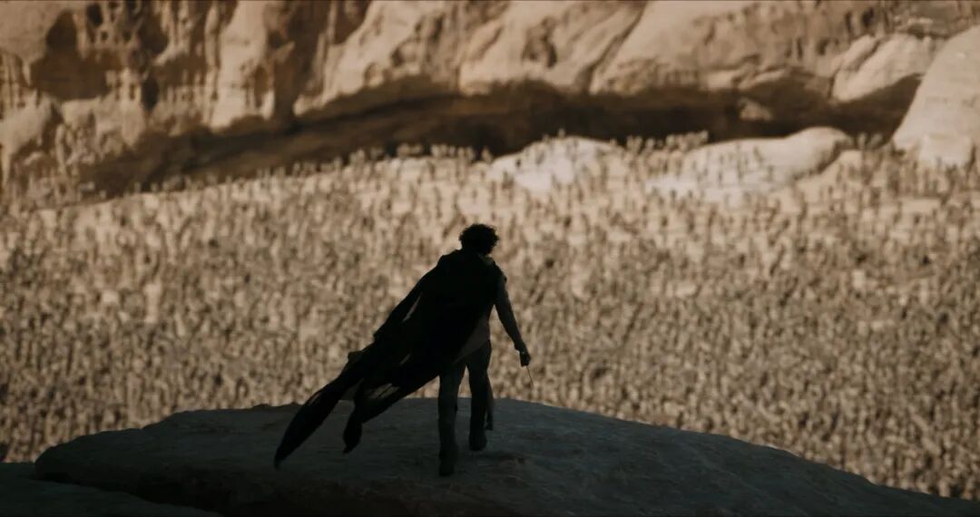本来带着“去殖民化”思想、拥有现代文明,试图与本地土著融合共同战斗的“外来者”保罗,最终难逃使用宗教手段掌控这些土著为己所用,这无疑是悲剧性的。而这样的悲剧,与维伦纽瓦寂寥苍茫的沙漠美学,完美融为一体。