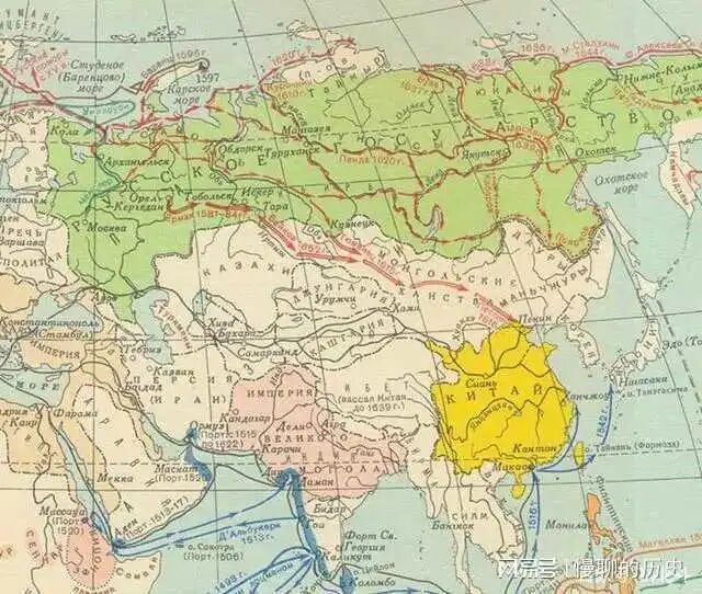 在葡萄牙、西班牙、荷兰忙于海上扩张的时候,俄罗斯就在陆地上疯狂扩张。1557年,伊凡四世开始派遣军队越过乌拉尔山脉进攻西伯利亚。1579年,西伯利亚汗国灭亡,俄罗斯很快就在鄂毕河流域建立了殖民据点,以便进一步的扩张。