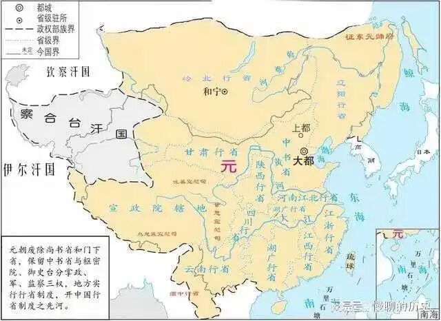 蒙古崛起后,先后消灭了西辽、西夏、金国,征服了吐蕃、大理、高丽。1271年,忽必烈建立了元朝,宣布继承为中国的皇帝。1279年,元朝灭南宋,标志着元朝统一了东亚大陆。元朝的版图空前辽阔,东到朝鲜,西到哈密,北越贝加尔湖,南到东南亚。元朝推行了行省制,奠定了中国省制的基础。