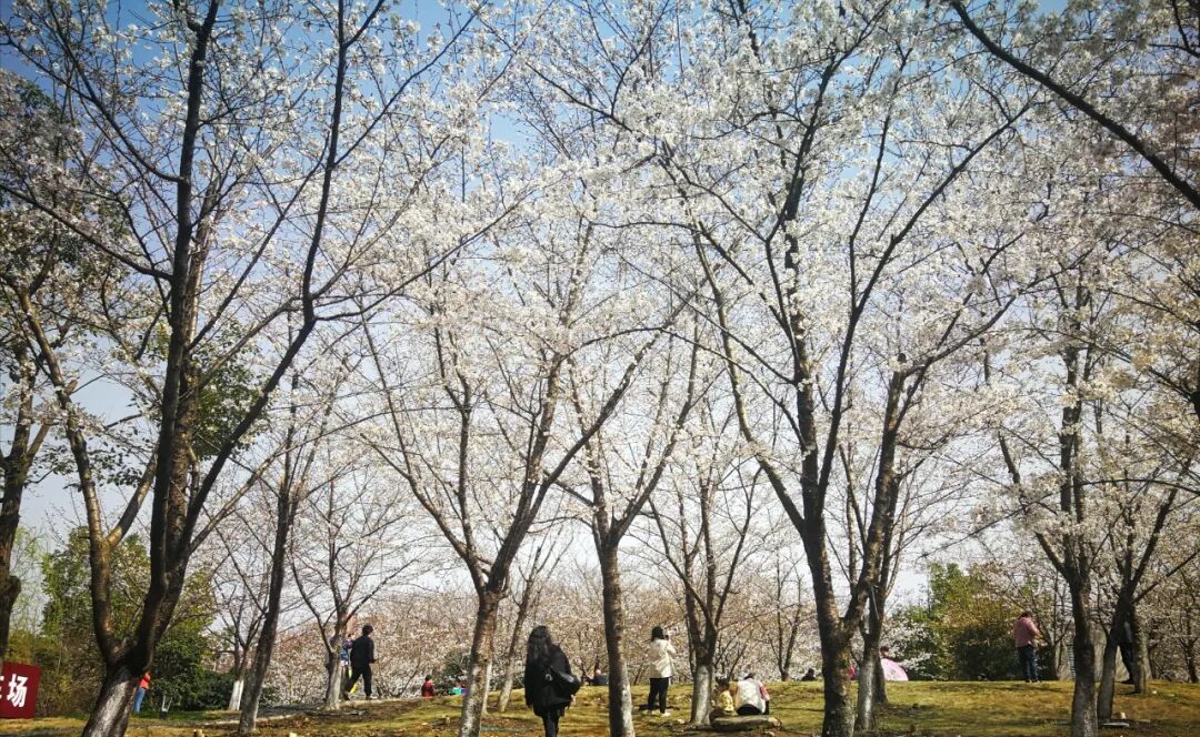 樱花开得正盛,这个公园里据说有1000多株樱花,十几个品种。目前看到的主要是这种大朵白色樱花。