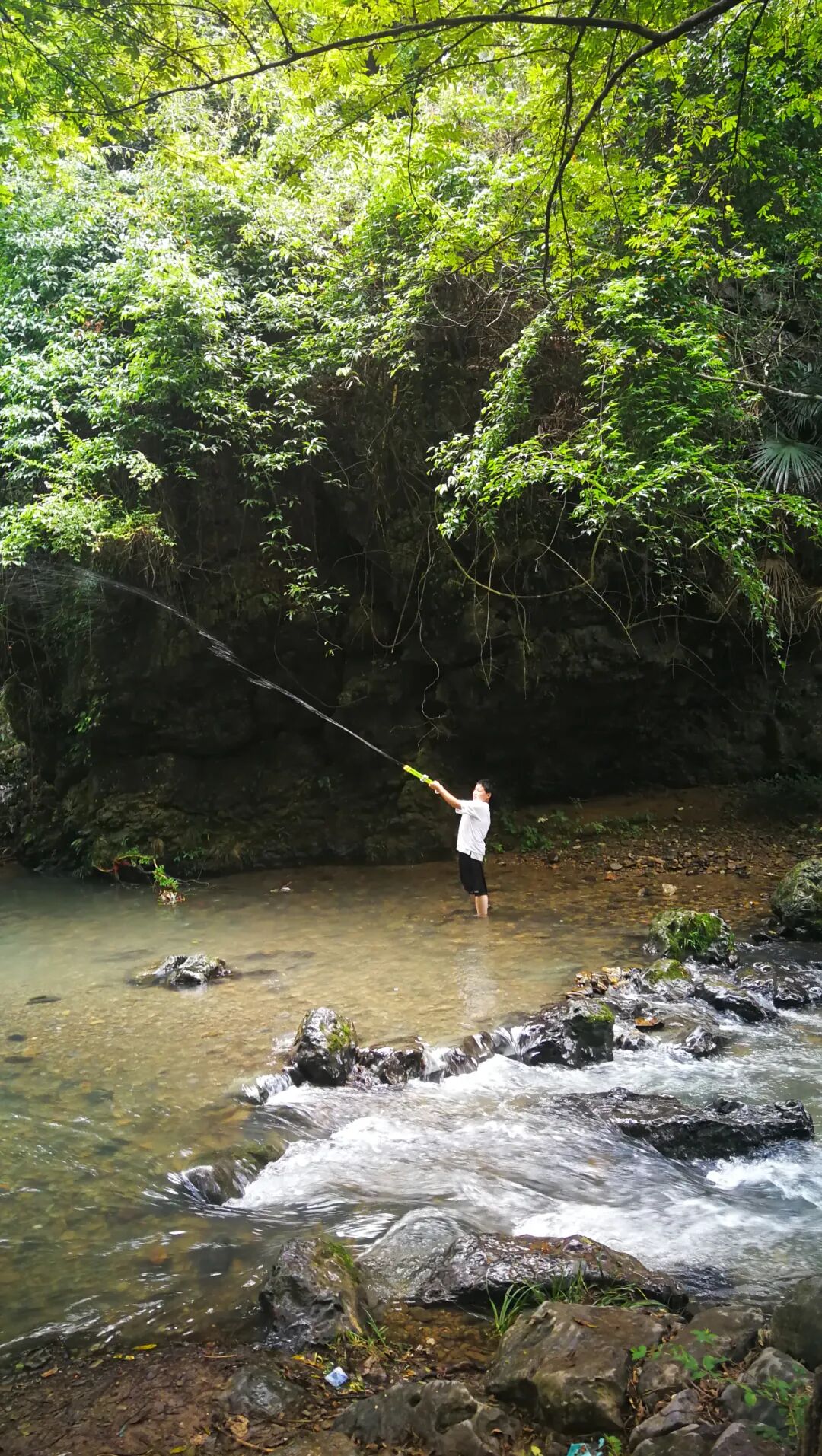 甚至有人还钓起了溪水鱼。真的有鱼。