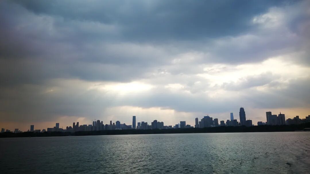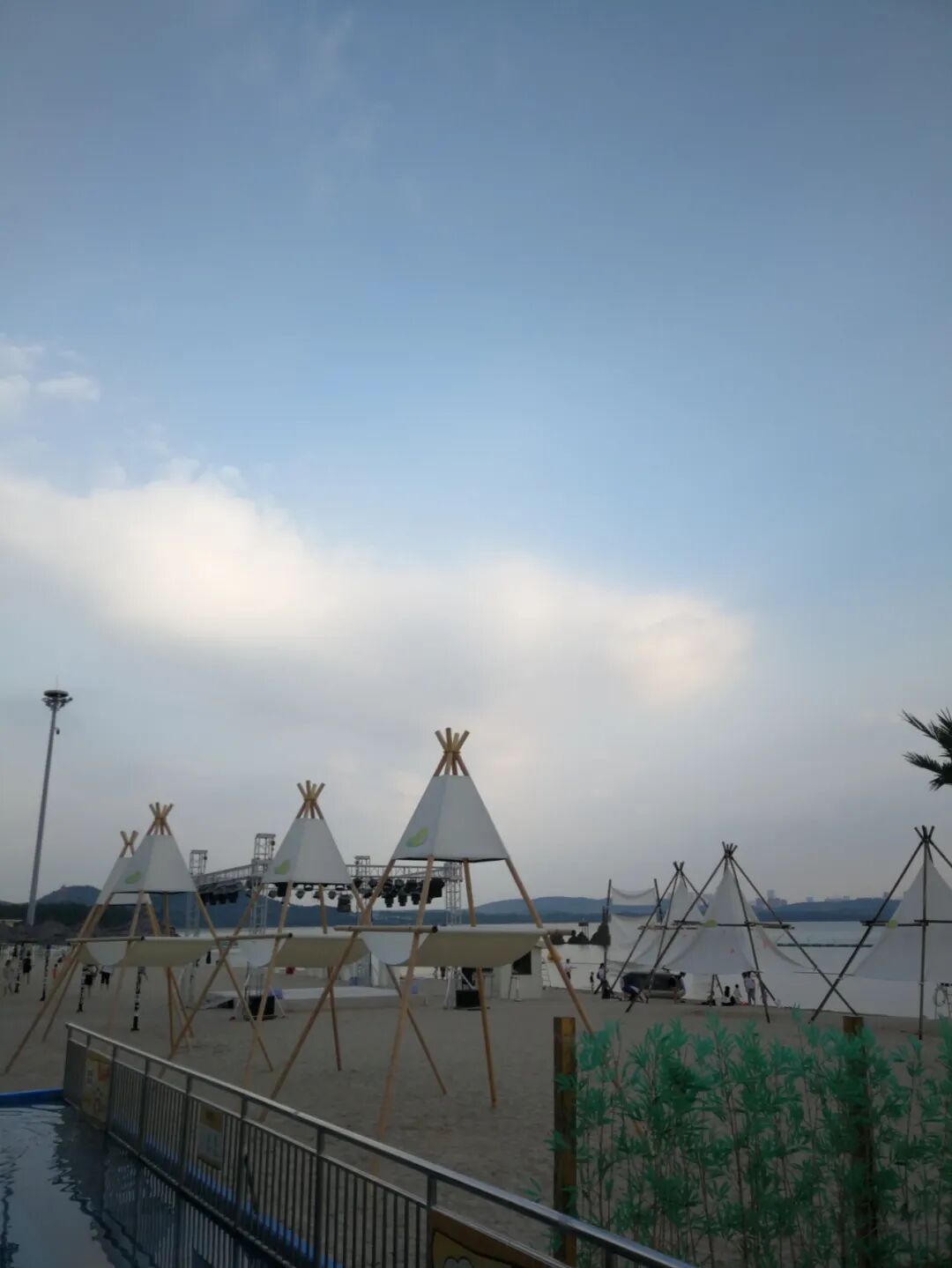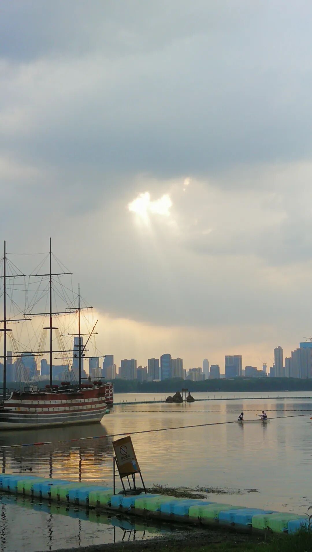 我们坐了最后一班船,楚风园出发,大概十几分钟就到了东湖沙滩。