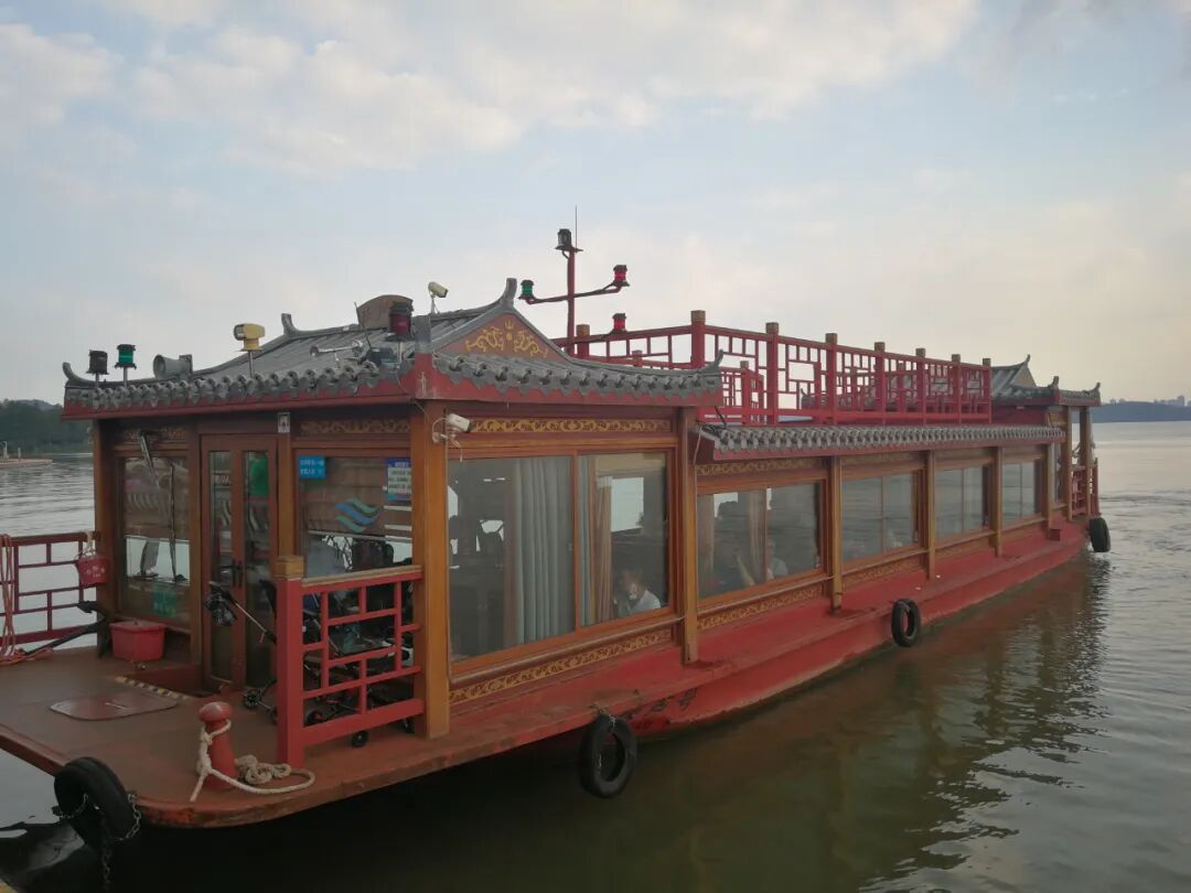游船一般都是从东湖楚风园那里开始,途径湖光阁(挨着就是东湖沙滩,还有那个帆船皮划艇,以及动物博物馆),最后达到磨山。最晚一班楚风园发出的船是下午五点,所以去之前做好规划。