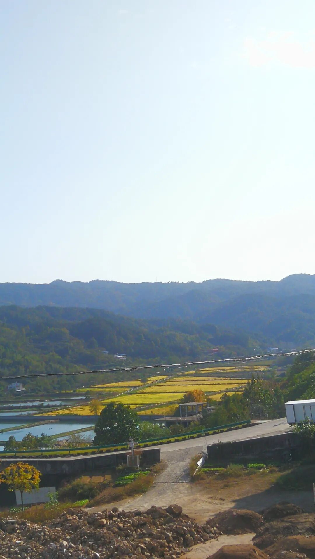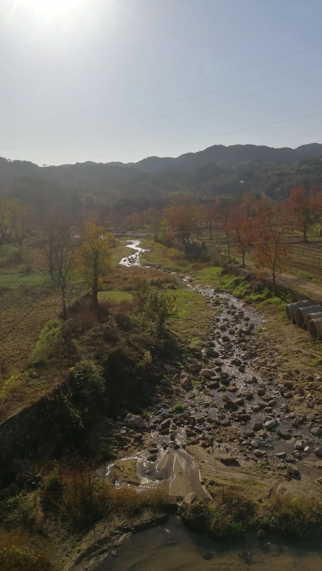 这条路左右都有山,有平坦的土地,还有安静的河流。秋日的漫游不就应该是这样么。