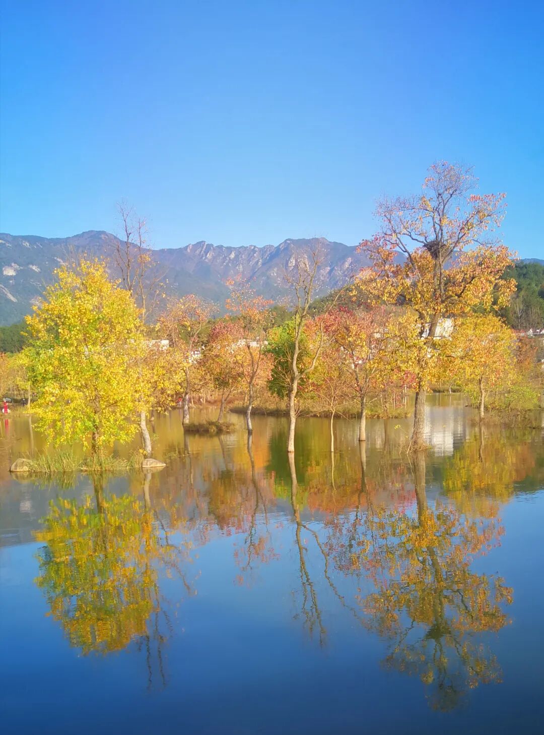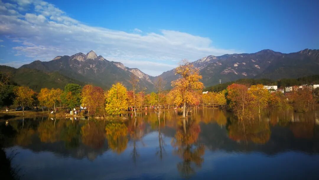 接着去“河西畈村”水上红叶,重点打卡此处景点,周末过去的话尽量早点过去。而且,条件允许的话,在日出前来,或能看到雾气中的红叶,更美。