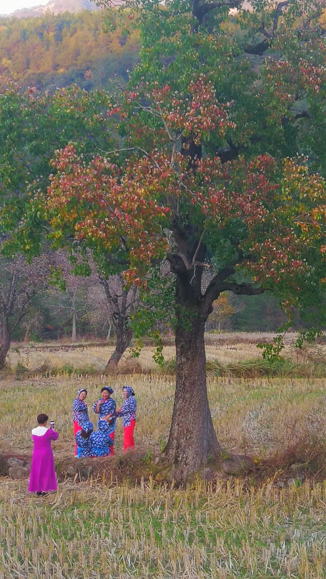 终于来到了预定目的地。先看第一处红叶古村。在这个被誉为“千年红叶第一村”的地方,确实看到了不少红叶乌桕树,但是并没有太惊艳。