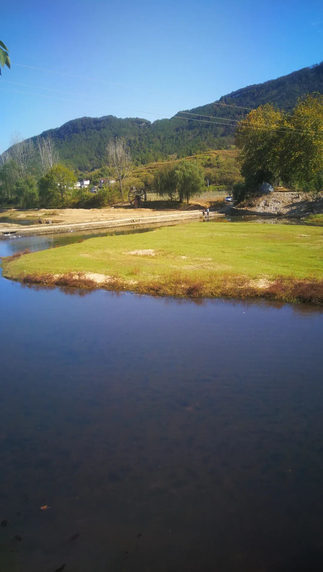 阳光和树木甚是和谐,水面的倒影,更添多彩。
