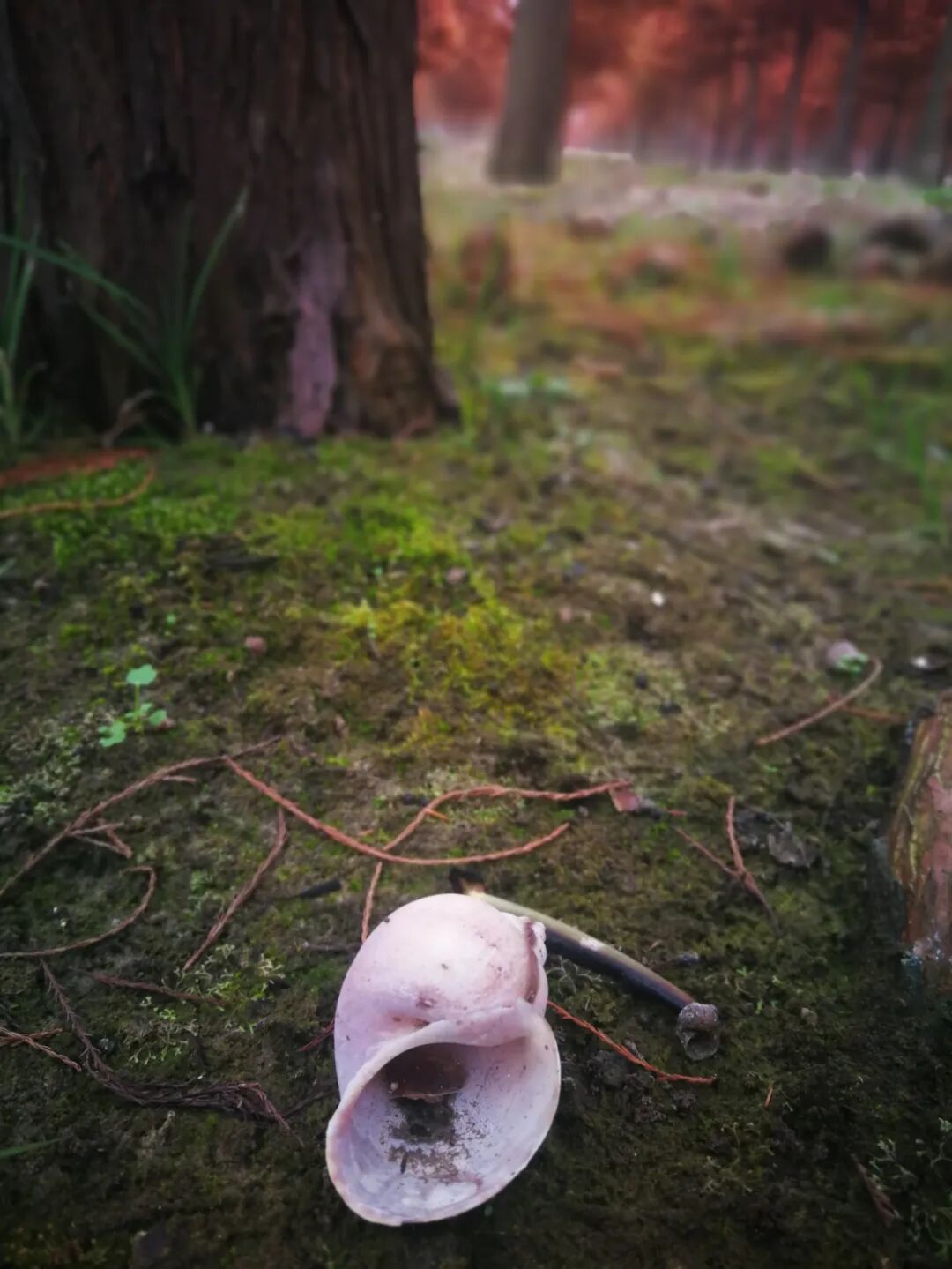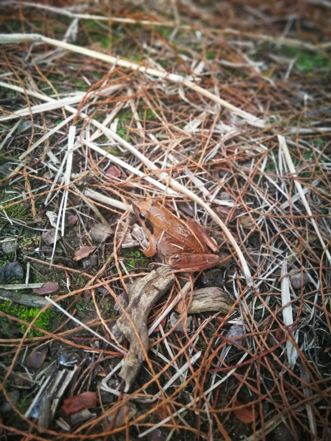 脚踩在湿润松软的泥土上,身边是一排排立正蓬松的树木,像是来到了冬天的绿野仙踪。还遇到了不常见的某种林蛙。生机勃勃。