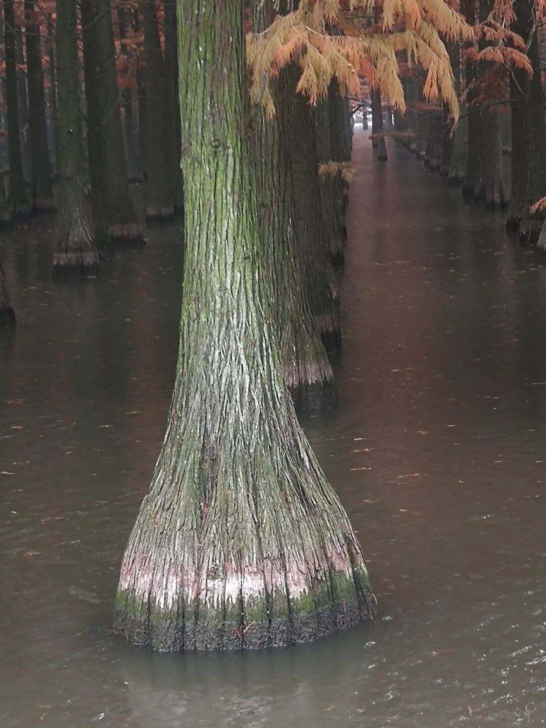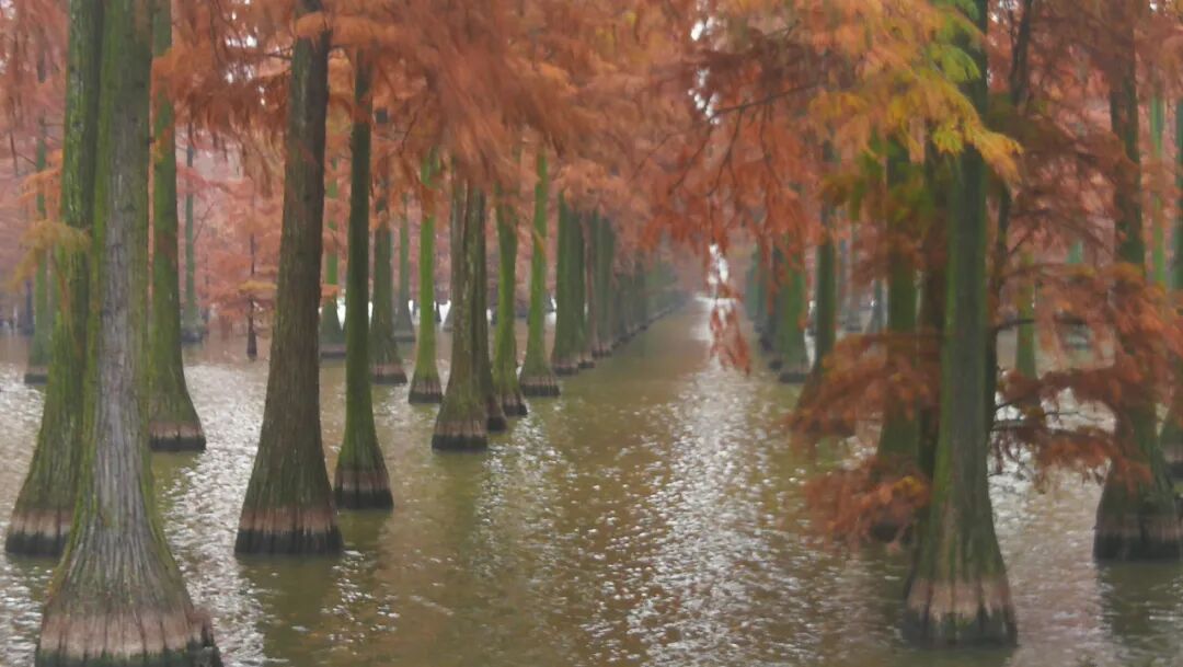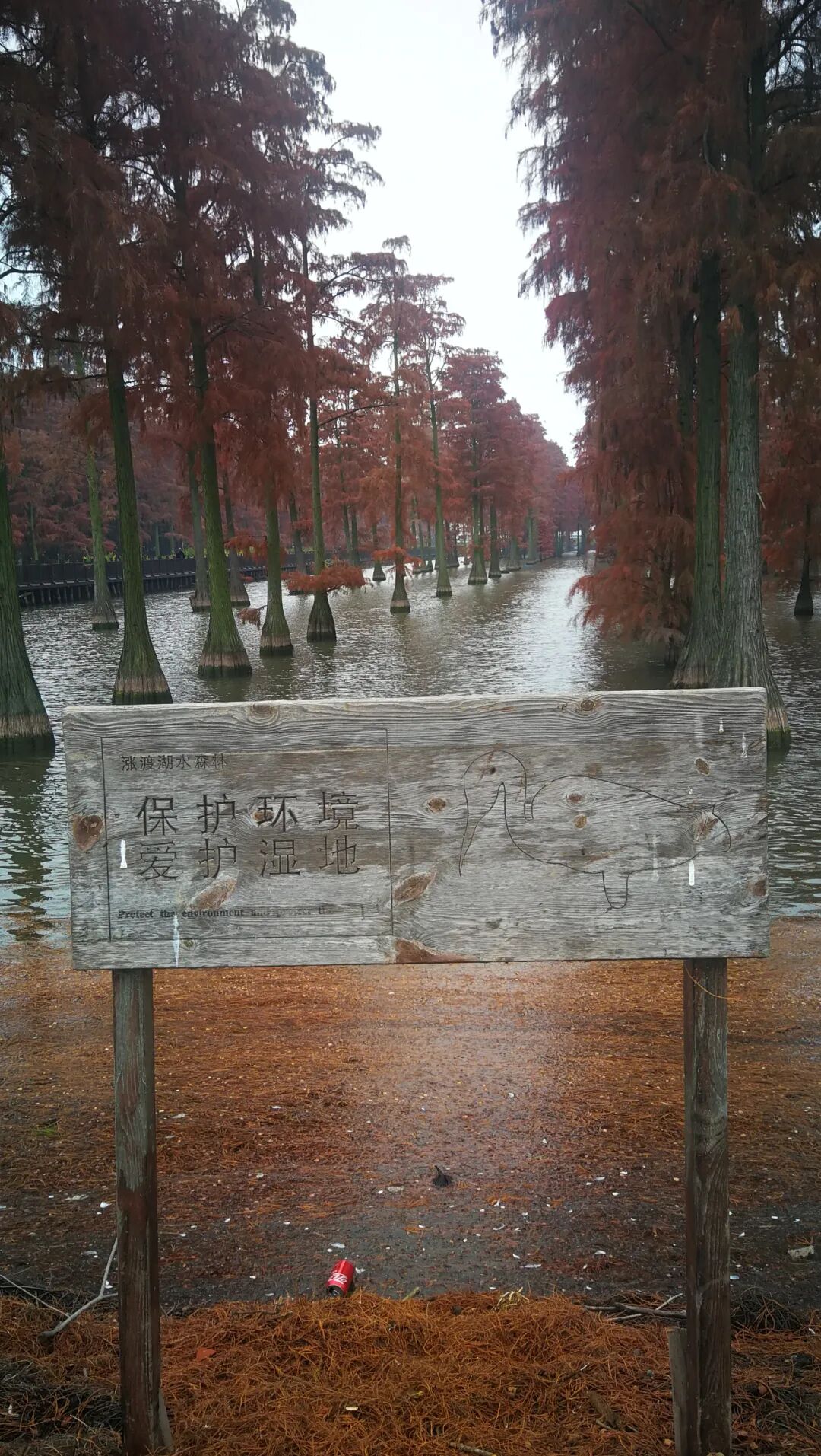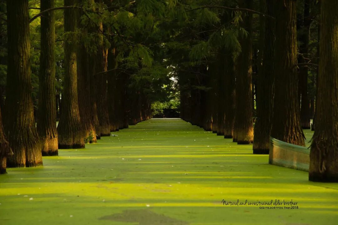 应该是武汉市最大的水上杉树林了。其间的杉树多数都是30年以上。多达15000棵。