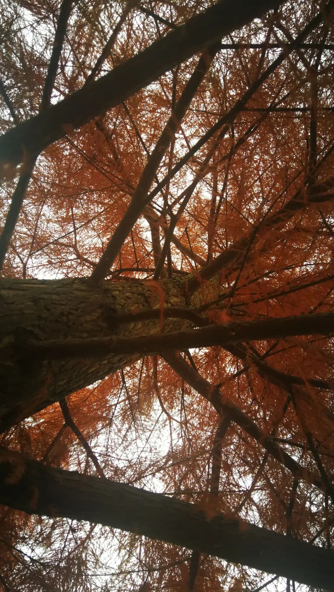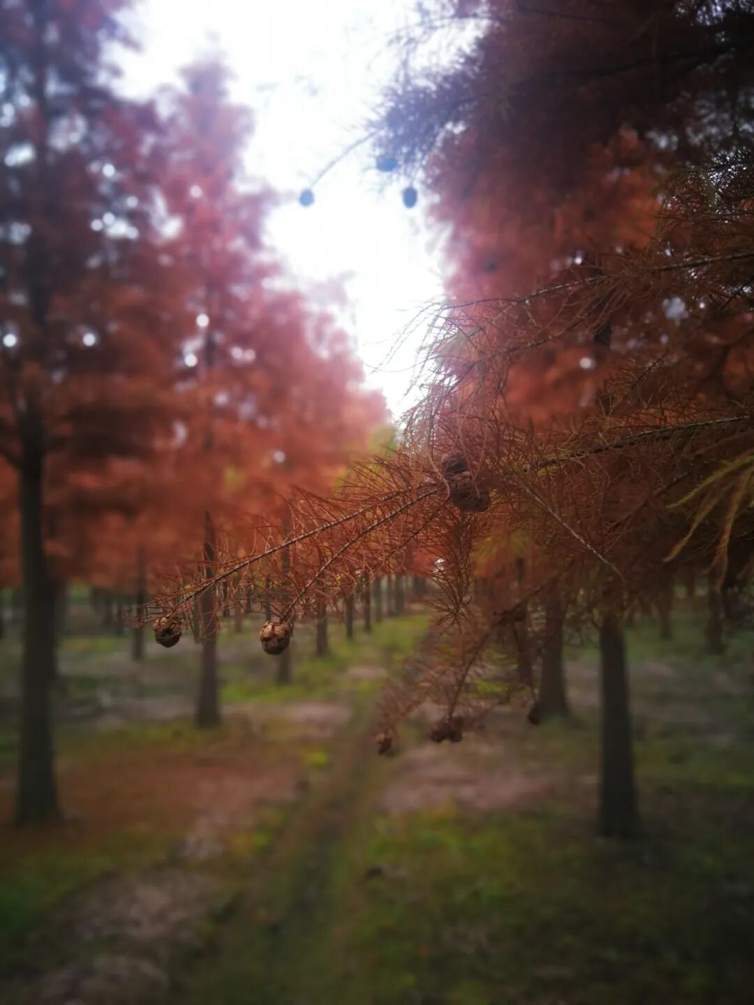 昨天逛公园,发现不受风吹雨打继续红红火火的植物中,水杉算是一种。