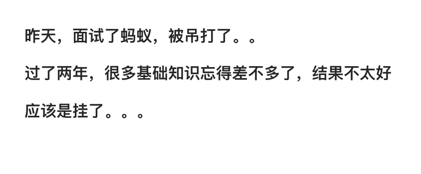 昨天有位同学反馈,面试蚂蚁被拒绝了。