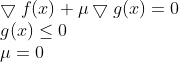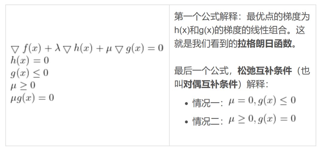 这个方程组就是所谓的KKT条件。它的含义是我们原始问题的极值点一定满足这个条件(不是极值点也可能满足),是取得极值的必要条件。