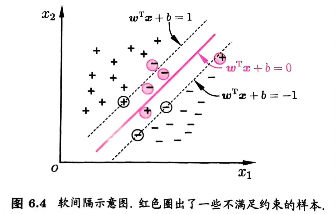 我们前面一直假定训练样本在样本空间或特征空间中是线性可分的。但在现实任务中,线性不可分的情形才是最常见的,退一步说,即使恰好找到了某个核函数使得训练集在特征空间中线性可分也是很难断定这个貌似线性可分的结果是否是过拟合造成的。因此需要允许支持向量机犯错,由此引出“软间隔”的概念。