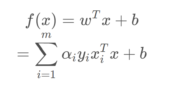 通过上式求出α 后,就可以求出w , b 从而得到模型:
