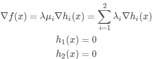 ,再求偏导为0,这就与之前的条件等价了。注意图中虽然是反向,但这里有可能是同向,有可能是反向,所以对λ并没有做要求。这其实就是拉格朗日乘子法。