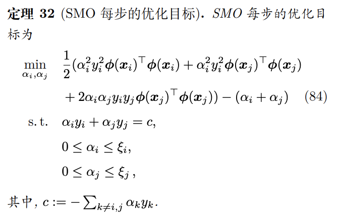 基本思路为:如果所有变量的解满足最优化问题的KKT条件,那么就得到了最优解。SMO算法与坐标下降法的思想差不多,不同的是,SMO 算法是一次迭代优化两个α而不是一个。它选择凸二次规划的两个变量,其他的变量保持不变,然后根据这两个变量构建一个二次规划问题,这个二次规划关于这两个变量解会更加的接近原始二次规划的解,通过这样的子问题划分可以大大增加整个算法的计算速度。