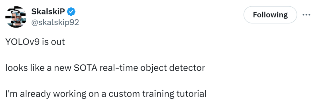 还有网友表示,YOLOv9 看起来就是新的 SOTA 实时目标检测器,他自己的自定义训练教程也在路上了。