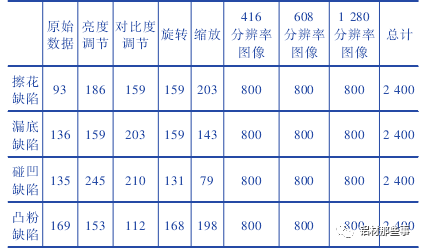 表 1 铝型材缺陷数据集组成