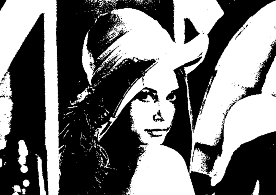 import cv2# 读取图像image = cv2.imread('lenna.jpg', cv2.IMREAD_GRAYSCALE)# 使用Otsu's方法计算阈值_, thresholded_image = cv2.threshold(image, 0, 255, cv2.THRESH_BINARY + cv2.THRESH_OTSU)# 显示原始图像和处理后的图像cv2.imshow('Original Image', image)cv2.imshow('Thresholded Image', thresholded_image)cv2.waitKey(0)cv2.destroyAllWindows()