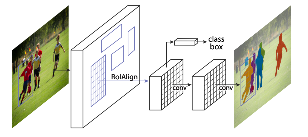通过以上公式推导和网络结构,Mask R-CNN 实现了目标检测和实例分割的任务,使得在检测到目标的同时,能够准确地将目标分割出来。