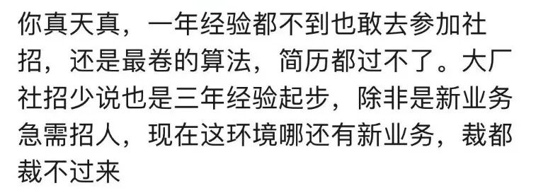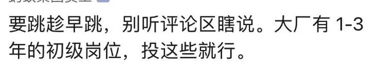 我和下面这位同学的观点一致,很多大厂设置有1~3年的岗位,而且不乏有急招岗位。谁说这个位置不是留给你的呢?