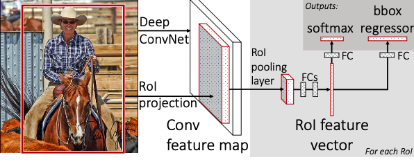 通过以上步骤,Fast R-CNN 实现了对输入图像中的目标对象进行快速、准确的检测。其关键之处在于引入了 RoI 池化层,使得可以在单次前向传播中同时处理所有感兴趣的区域,从而显著提高了处理速度和效率。