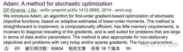 一直被对比,从未被超越的Adam,目前的引用量是60604次;