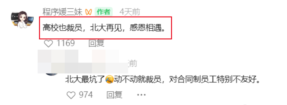 今天看到一个视频,说的是小姐姐被北大裁员了。