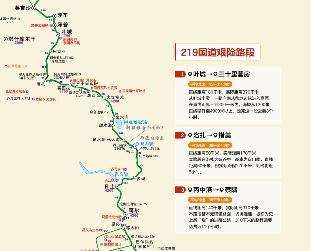 自驾游的主要开销,在于吃住行,也就是餐费、住宿费、油费。其他的消费,就剩下景区门票。我们只要算清楚了总里程,就可以计算出自驾时长,进而得出预估花费。✅自驾“中国边境大环线”,总里程多长?“中国边境大环线”的总里程为27166公里,其中,219国道全长10065公里,331国道全长9301公里,228国道全长7800公里。值得一说的是,219国道是中国最长的国道,被誉为“国之大道”。大部分路段已修通,只剩下3段路仍处于修建中,一是西藏林芝“察隅—墨脱”路段,二是与独库公路呈并行走势的新疆“夏塔—阿克苏”路段,三是新疆赛里木湖西畔“温泉—清水河”路段。