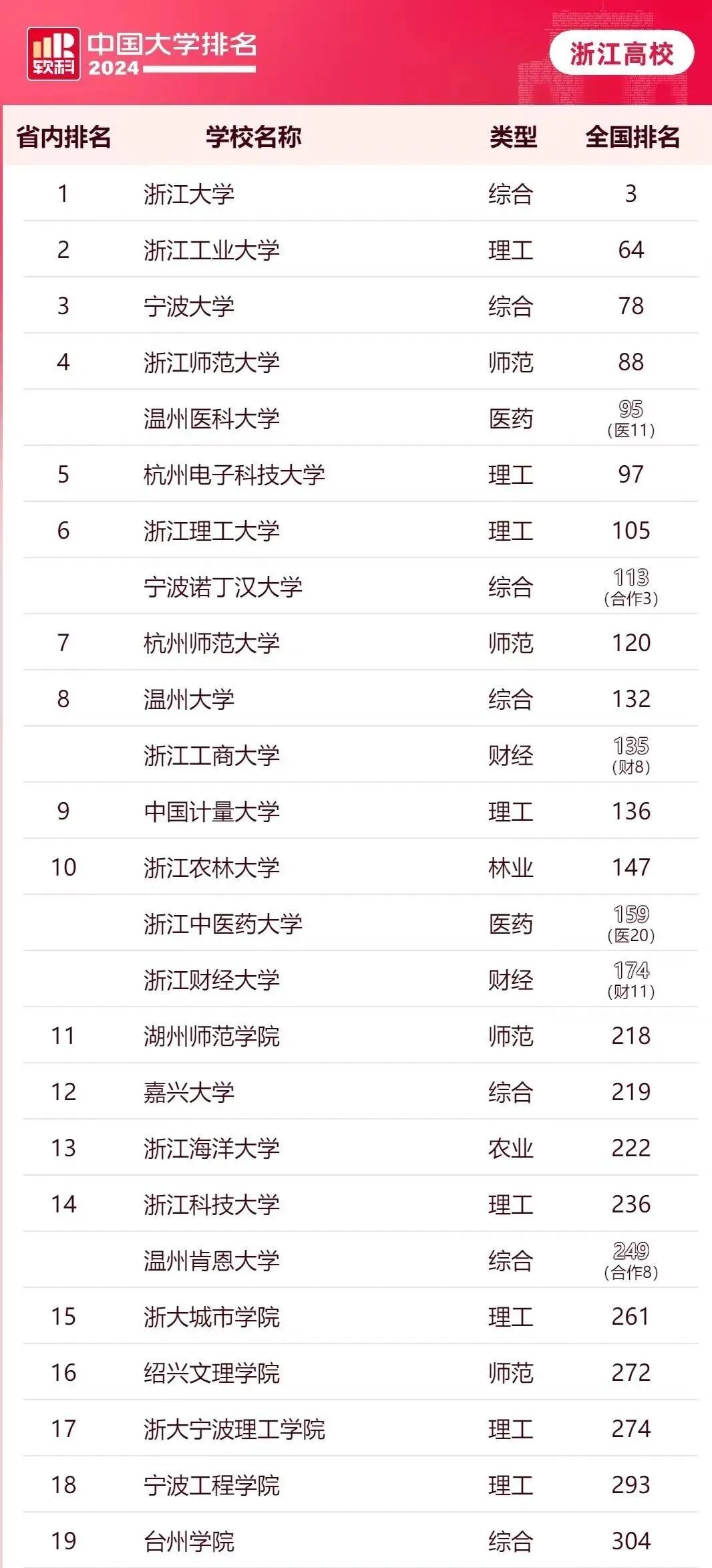 最近软科发布的2024年大学排行榜,浙江就有6所高校进了全国百强,除了双一流大学浙江大学和宁波大学,其他4所都是大家口中的“双非”高校。