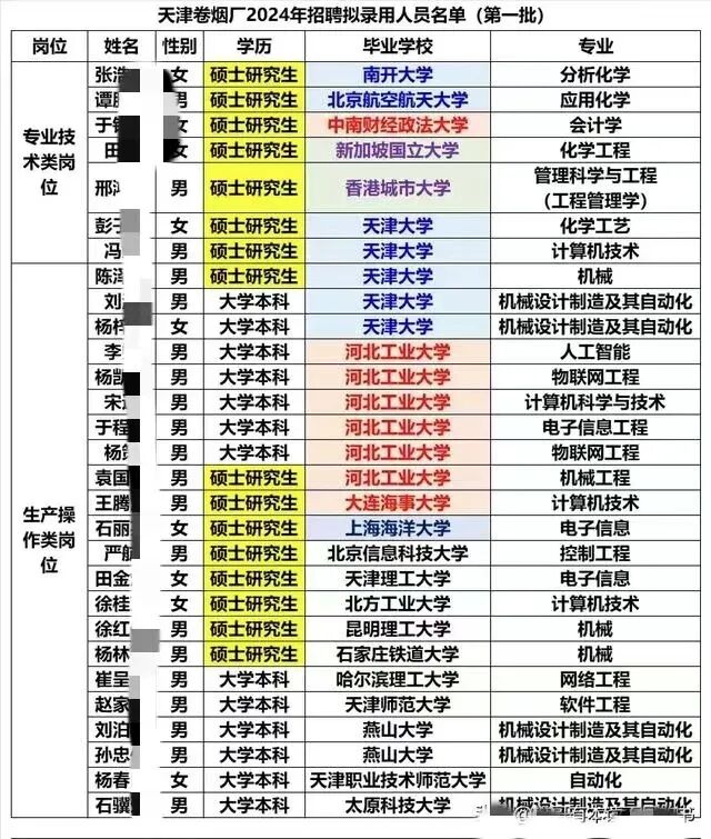 最近,天津卷烟厂2024年的拟录用人员名单新鲜出炉,一石激起千层浪,尤其是其中一位天津大学机械专业的硕士研究生,竟然选择了成为卷烟厂的生产操作工,让人直呼有点大材小用。