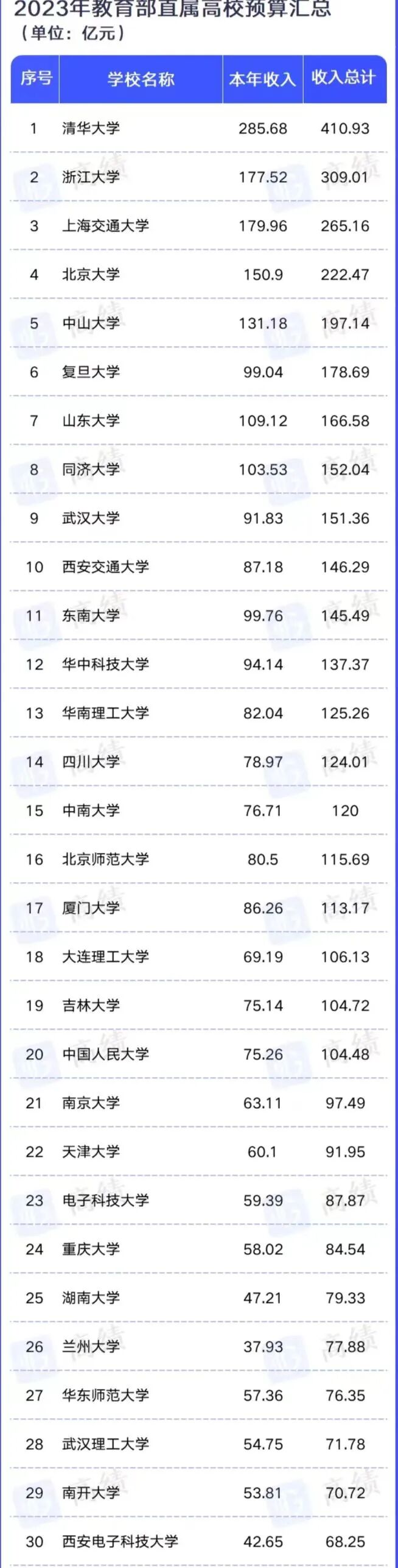 哪所大学是我国最有钱的大学,办学经费最充足。今天我们来看一下各个大学的经费排名情况,据统计,2023年全国教育经费总投资是61,329亿,其中大部分是用在大学的建设上面,我们看2023年的这份大学经费的排行榜。