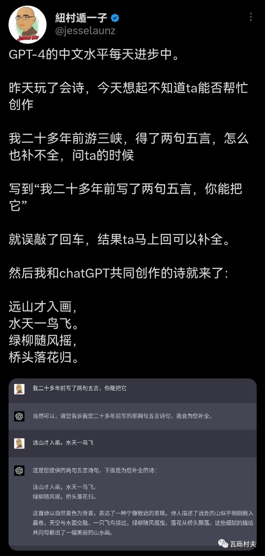 我认为今年就可能产生影响。现在的GPT-4能够写诗和。。。
