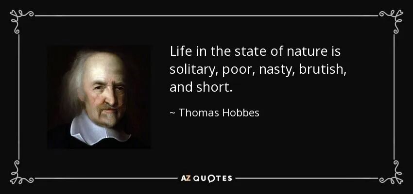 英国哲学家托马斯·霍布斯在《利维坦》一书中说,脱离社会的生活将是“孤独、贫穷、龌龊、残酷和短暂的”